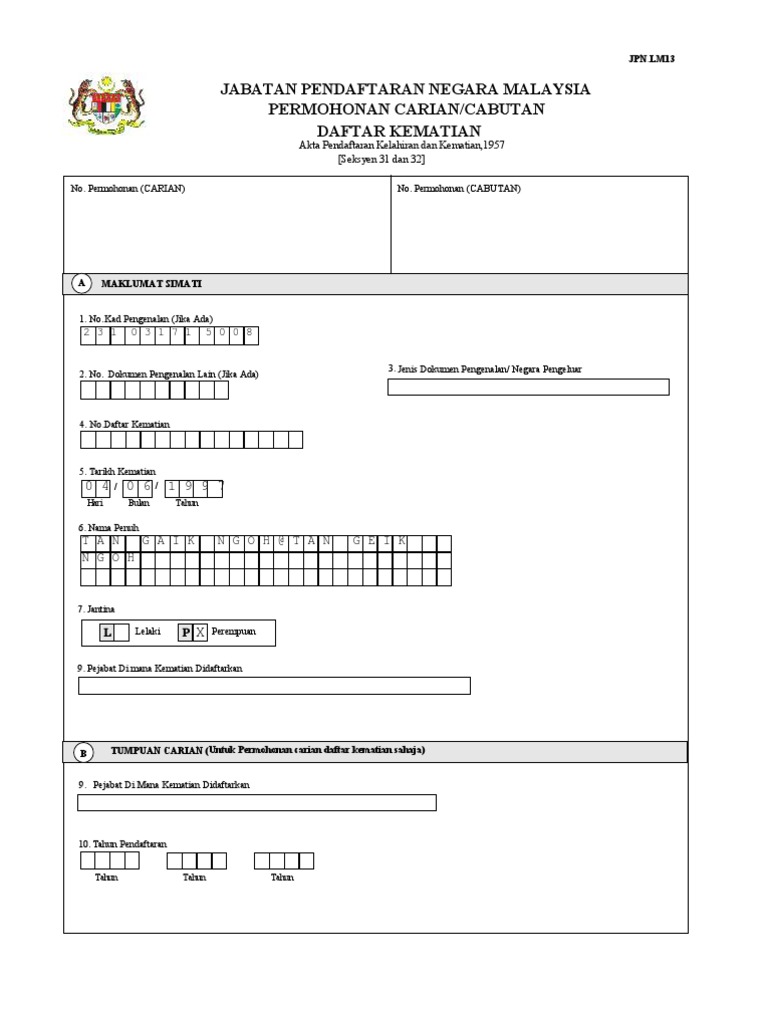 Contoh Surat Kematian Di Malaysia Contoh Surat